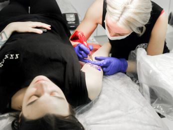 Подбирать краски и иглы, оборудовать рабочее место, стерилизовать инструменты и работать с тату-машинкой.